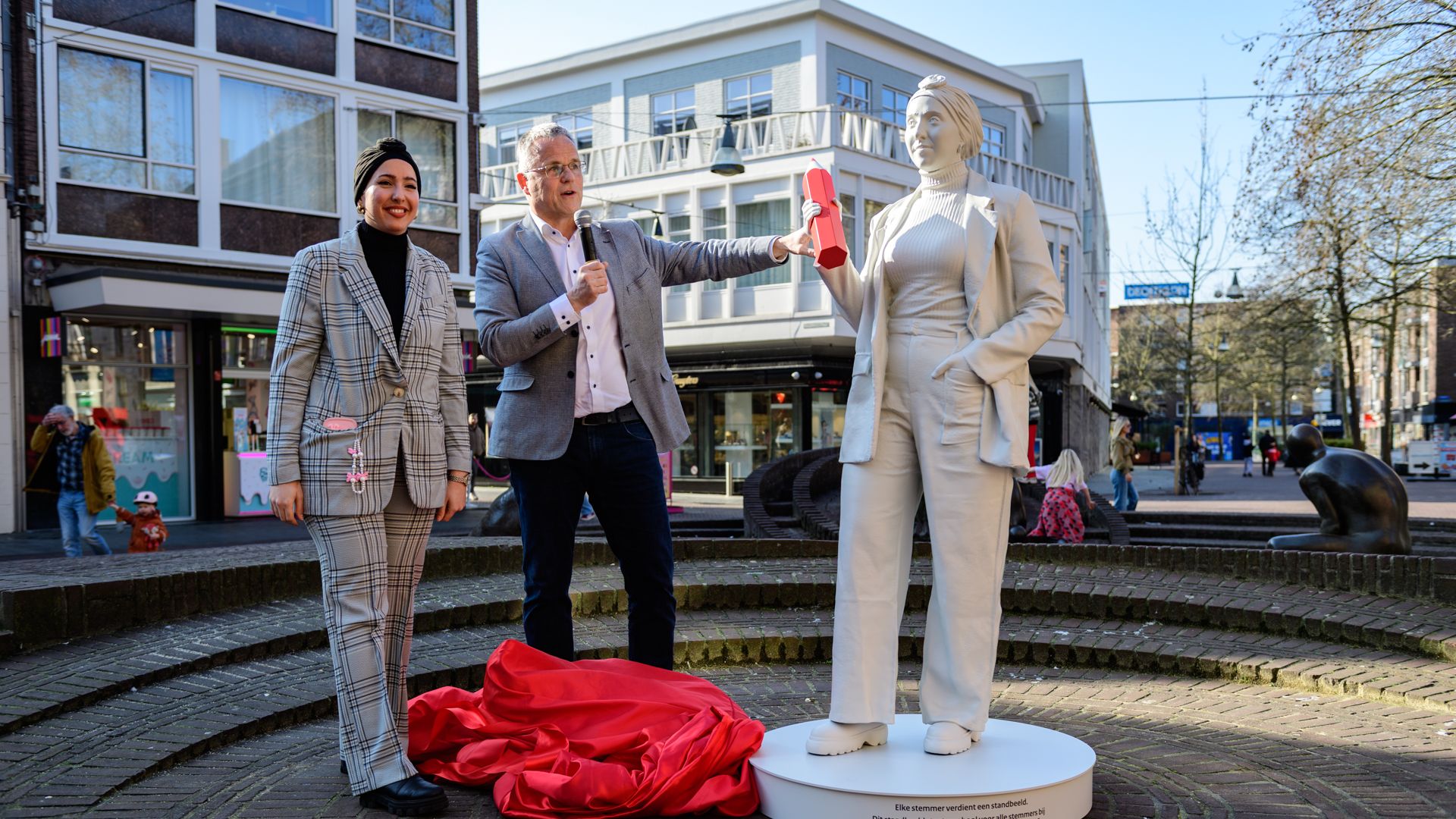 Bij de onthullingen zijn burgemeesters en teams aanwezig die met mensen gesprekken voeren over de gemeenteraadsverkiezingen. En daarvoor hebben ze ook nog eens een photobooth mee, waarmee iedereen zichzelf direct kan laten omtoveren tot zo’n standbeeld. Het filter om van jezelf een standbeeld te maken, is ook te vinden via elkestemmer.nl en via SnapChat.